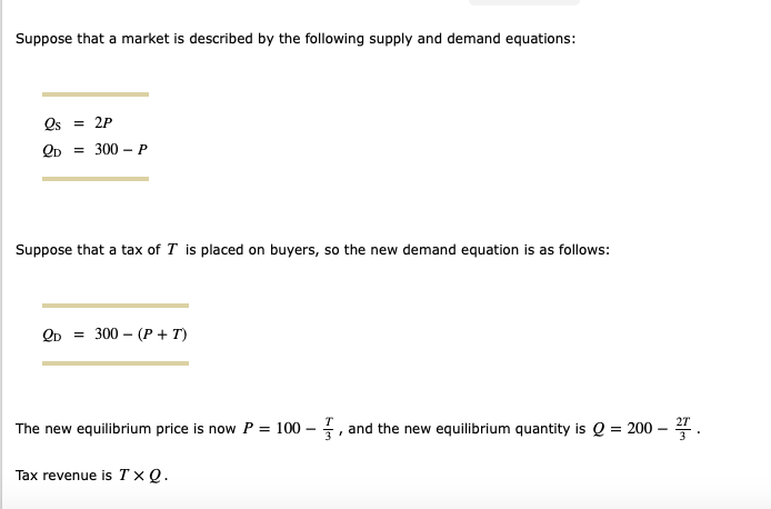 Solved Suppose That A Market Is Described By The Following Chegg Com