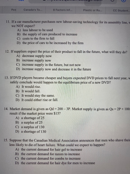 Solved 12 If Suppliers Expect The Price Of Their Product To Chegg Com